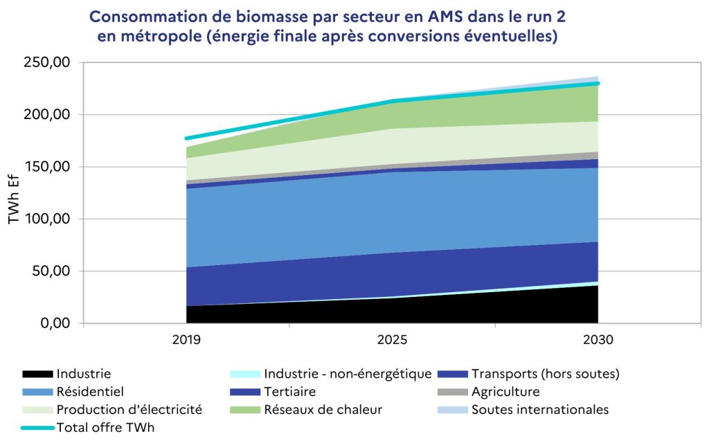 Consommation de biomasse par secteur dans les modélisations actuelles du scénario provisoire